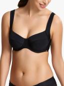 You can't go wrong with the Panache Anya Riva Full Cup Balconnet Bikini top. The non-padded, underwired, three-piece cups and powermesh wings offer comfortable, bra-style support while the adjustable straps provide a custom fit. Finished with glamorous gold branded detailing.